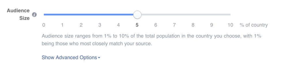 لكن عندما ستريد إنشاء “Facebook Lookalike Audiences” ستجد هنالك العديد من الخيارات تبدأ من 1% وتنتهي في 10%…
