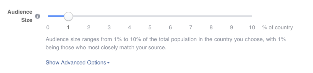 لكن عندما ستريد إنشاء “Facebook Lookalike Audiences” ستجد هنالك العديد من الخيارات تبدأ من 1% وتنتهي في 10%…
