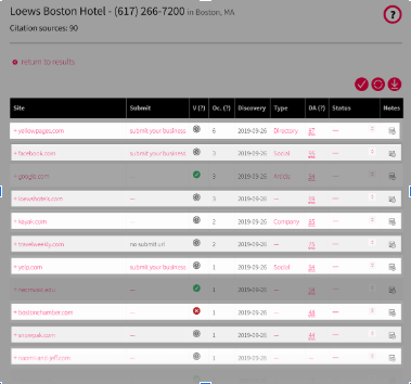 وسوف نستخدم أدوات مثل WhiteSpark و Loganix حتى تبحث لك عن NAP في جميع مواقع الانترنت ويوجد هناك العديد من الأدوات الأخرى التي تؤدي نفس الوظيفة.
